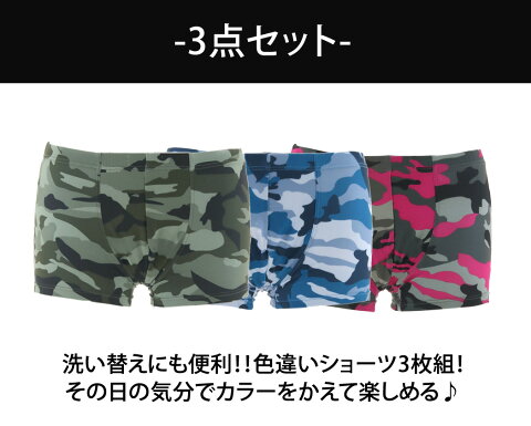 メンズショーツ3点セット L〜3XL 6types -3点セット- 洗い替えにも便利!!色違いショーツ3枚組! その日の気分でカラーをかえて楽しめる♪